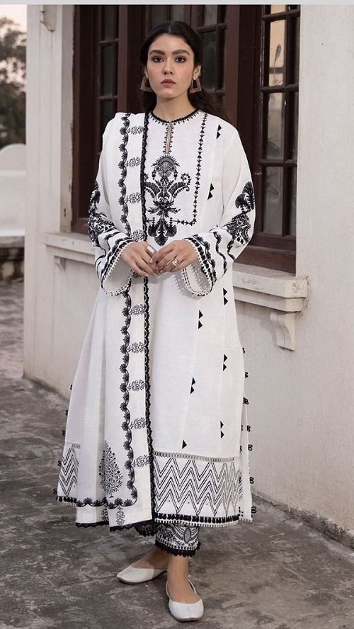 The standard style comes as a long-sleeved kameez with dupatta and trouser/shawlar.